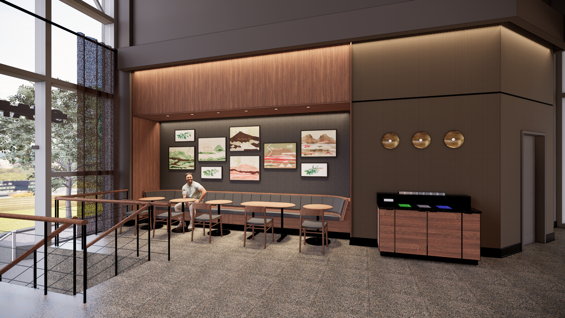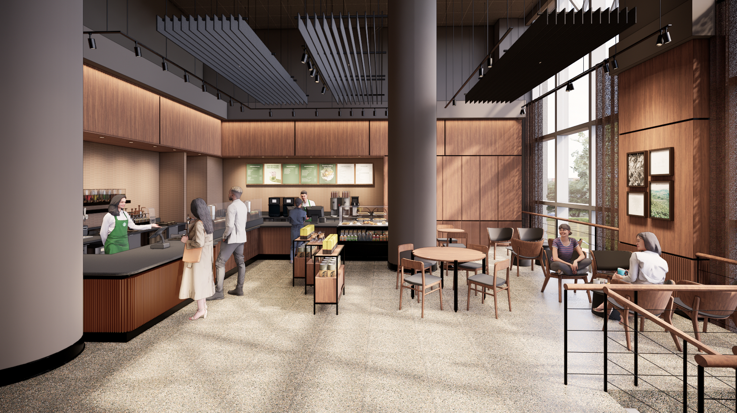 Located in the heart of downtown Jacksonville, FL, this store will be located in a ground floor prime corner of the Bank of Americal Tower. With recent downtown major revitalization efforts, in addition to being the only Starbucks located in the downtown district, this coffeehouse will be a major draw for many users. It has been designed with the intentional application of layered, warm toned, and textured materiality, to make this location a welcoming, accessible, and comfortable environment for all.